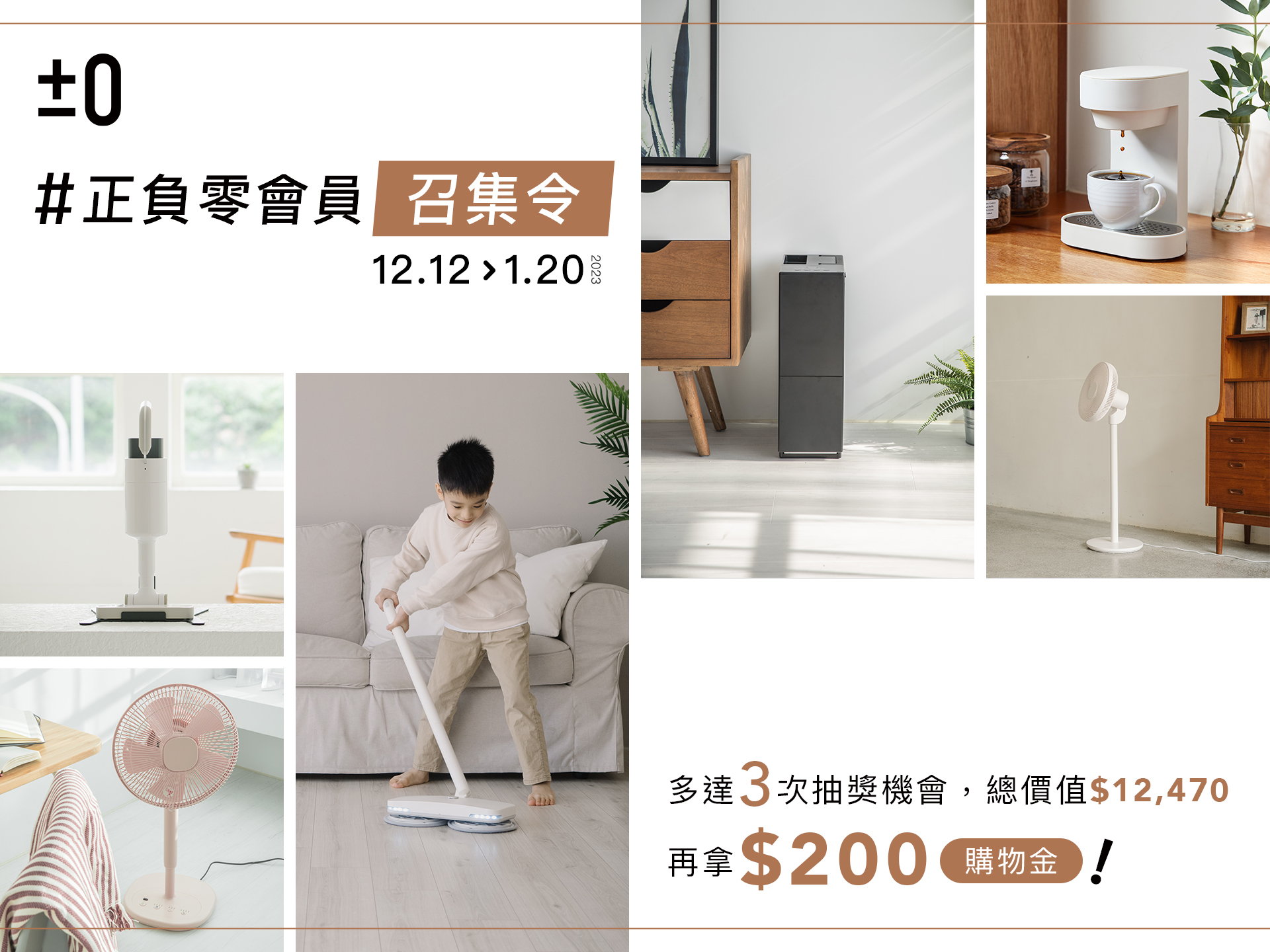 多達3次抽獎機會,最高可獲得總價值$12,470的大獎,讓正負零為生活增添更多美好!